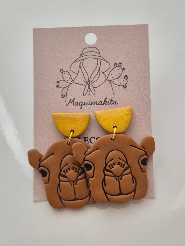Cada pendiente es una pequeña escultura modelada a mano en arcilla polimérica de alta calidad, capturando la silueta característica y el porte noble de estos animales. Con un diseño que evoca su presencia en los paisajes de Timanfaya, estos pendientes no solo son una joya, sino un fragmento de la historia viva de Lanzarote, un recuerdo de las rutas que cruzan la lava y el rofe. Su color tierra y su acabado artesanal reflejan la autenticidad y la robustez del entorno que los inspira.