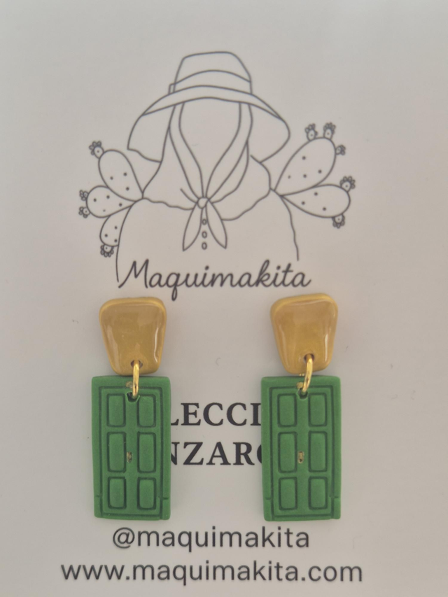 En Maquimakita, nos dejamos envolver por la esencia de la arquitectura tradicional de Lanzarote, y encontramos la inspiración en un detalle que nos roba el alma. Nuestros Pendientes son una pequeña ventana a la historia, al encanto de los pueblos encalados y a las historias que se guardan tras esos umbrales de intenso color. Cada pendiente es una miniatura arquitectónica modelada a mano en arcilla polimérica de alta calidad, replicando con cariño la forma y el color inconfundible de estas puertas tan características de la isla. El verde vibrante sobre un fondo que evoca la pureza del blanco encalado, con detalles sutiles que sugieren sus herrajes o su textura, convierte esta joya en un fragmento de la identidad lanzaroteña. Son una invitación a la nostalgia, al sosiego de los rincones isleños y a la belleza de lo sencillo.