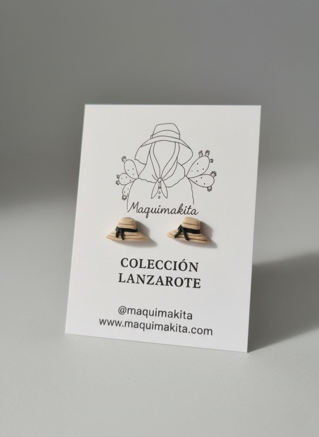 ​Cada pendiente es una miniatura meticulosamente moldeada a mano en arcilla polimérica de alta calidad, replicando con cariño la forma característica y la textura humilde de la sombrera tradicional de Lanzarote. Con un diseño que evoca su presencia en las faenas del campo, en las romerías o protegiendo del sol al "conejero" (gentilicio de los habitantes de Lanzarote), estos pendientes no son solo un accesorio; son un fragmento de nuestra identidad, un recordatorio de la vida sencilla, el trabajo y la belleza que reside en lo genuino de nuestra isla. Su acabado artesanal y su color neutro o tierra realzan su conexión con el paisaje volcánico.
