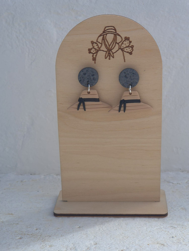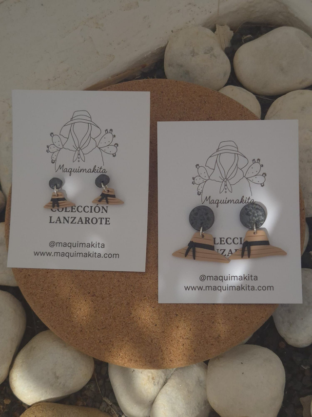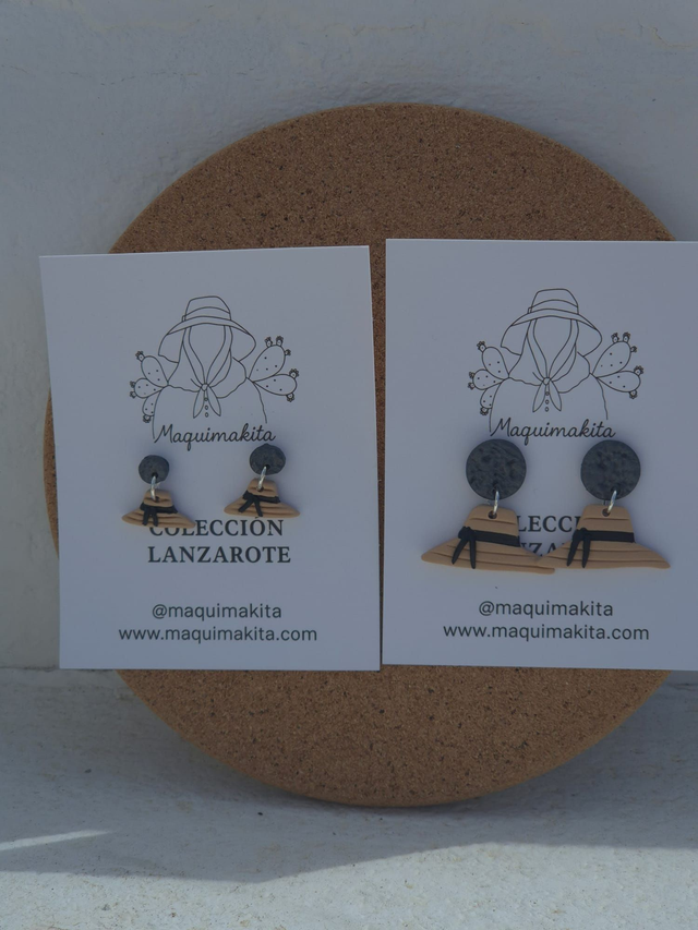 Cada pendiente es una miniatura meticulosamente moldeada a mano en arcilla polimérica de alta calidad, replicando con cariño la forma característica y la textura humilde de la sombrera tradicional de Lanzarote. Con un diseño que evoca su presencia en las faenas del campo, en las romerías o protegiendo del sol al "conejero" (gentilicio de los habitantes de Lanzarote), estos pendientes no son solo un accesorio; son un fragmento de nuestra identidad, un recordatorio de la vida sencilla, el trabajo y la belleza que reside en lo genuino de nuestra isla. Su acabado artesanal y su color neutro o tierra realzan su conexión con el paisaje volcánico.